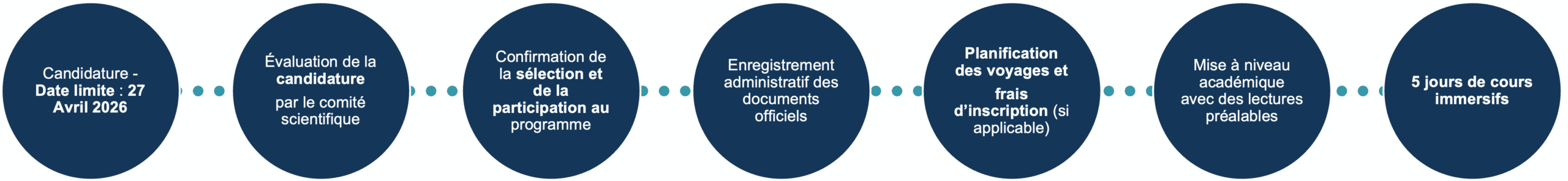 Les participants sélectionnés sans bourse devront régler l’ensemble des frais applicables deux mois avant le début du cours afin de confirmer leur participation.